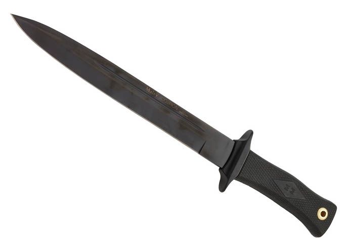Knife with gum handle and black zamakand friction resistant PTFE blade coating. Blade 260mm.