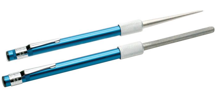 • DIAMOND-COATED - This writing pen-size sharpener uses an unbreakable diamond-coated steel rod to sharpen single or double-bevel pocket, sport, or tactical knives quickly and effectively.