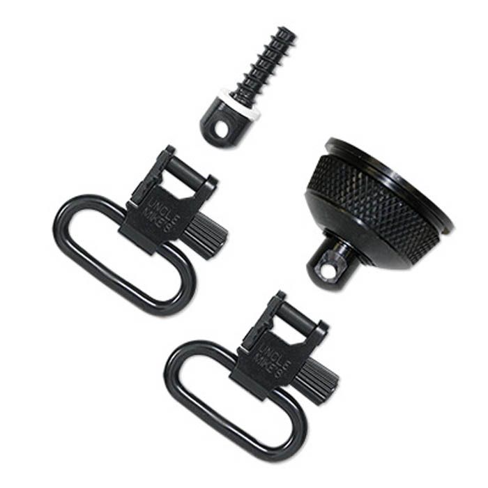 Remington Model 870 Express swivels. Replacement magazine cap with swivel base, 3/4" wood screw butt-stock swivel base and two Super Swivels. Not for 3 1/2" mags.