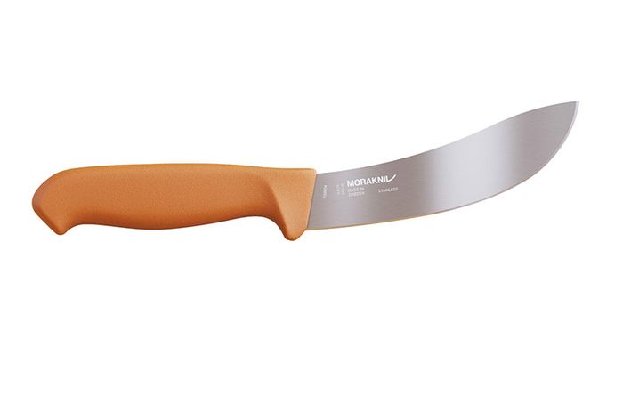 A knife specially developed for skinning. The stiff blade with it's long, curved edge can perform even and precise cuts.