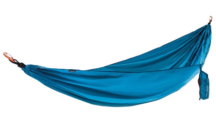 Spacious Travel hammock made of soft and strong 70 Denier Diamond Ripstop Nylon. With super-strong four needle stitches. Two 12 KN aluminum carabiners in stuff sack included.