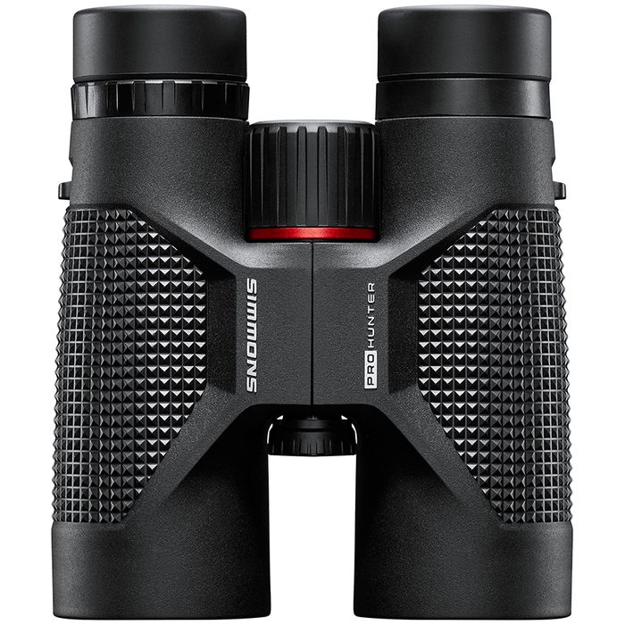 The all-new Simmons Pro Hunter Binoculars are built with an all-glass optical system providing crisp images in low lighting conditions with fully coated lenses and IPX7 waterproof and fog-proof construction giving you peace of mind in the outdoors. An aggressive rugged design with textured grip zones keep these binoculars securely in your hands. The Pro Hunter binoculars also feature a tripod adapter lug and include a convenient soft-sided carry case, neoprene neck strap, rubber lens covers and lens cleaning cloth.• Aggressive and rugged new rubber design