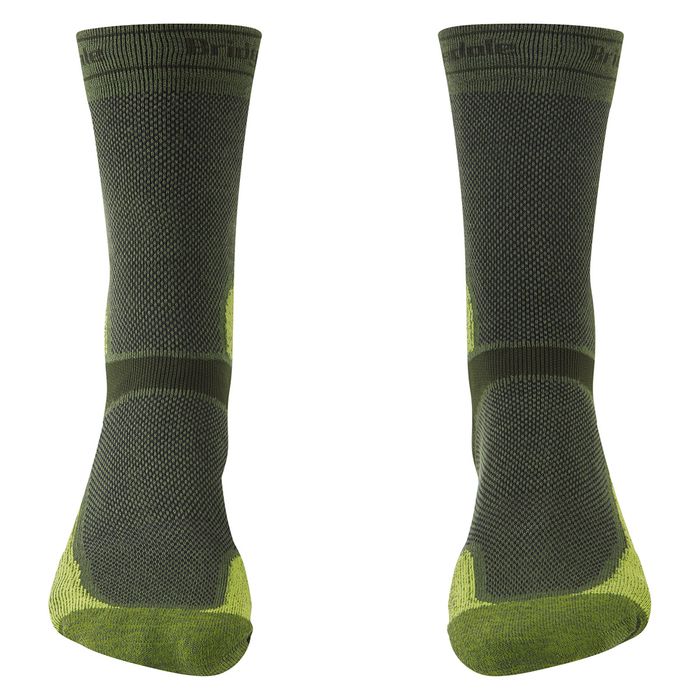 Specifically designed for Mountain Bikers, by Mountain Bikers over a three-year development process, the Bridgedale MTB sock is a game changer in terms of comfort and durability. The Summer Weight T2 Coolmax Sport combines underfoot padding with mesh ventilation throughout the sock to create the perfect weight for hot summer days and comes with a host of unique features. An anatomical vibration dampening footbed, designed to alleviate the underfoot discomfort from the pedals as you hurtle downhill. Your achilles and ankle are protected with strategically knit pads. The specifically designed left and right socks give you the padding and protection exactly where you need it on the outside of your foot and around your toes. The Sport Fit gives supportive compression for stability and balance around the ankle and mid foot and the tighter knit cuff gives an extended close fit to prevent debris getting in and means your sock won’t slip down or bunch in your footwear. Coolmax Sport Fusion Technology provides resilient padding, moisture wicking, odour control and outstanding durability on the trails. The ultimate sock for those hot Summer MTB days.