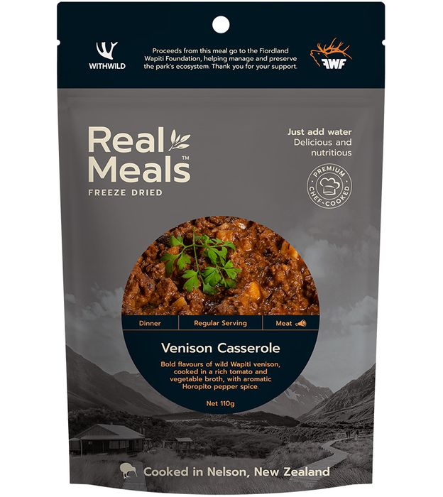 Venison CasseroleBold flavours of wild Wapiti venison, cooked in a rich tomato and vegetable broth, with aromatic Horopito pepper spice.